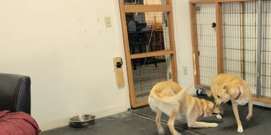 Mid-day is quiet time. Everyone gets the chance to relax with a chew or toy. Quiet time brings the excitement down and allows the dogs to decompress and helps minimize overstimulation.